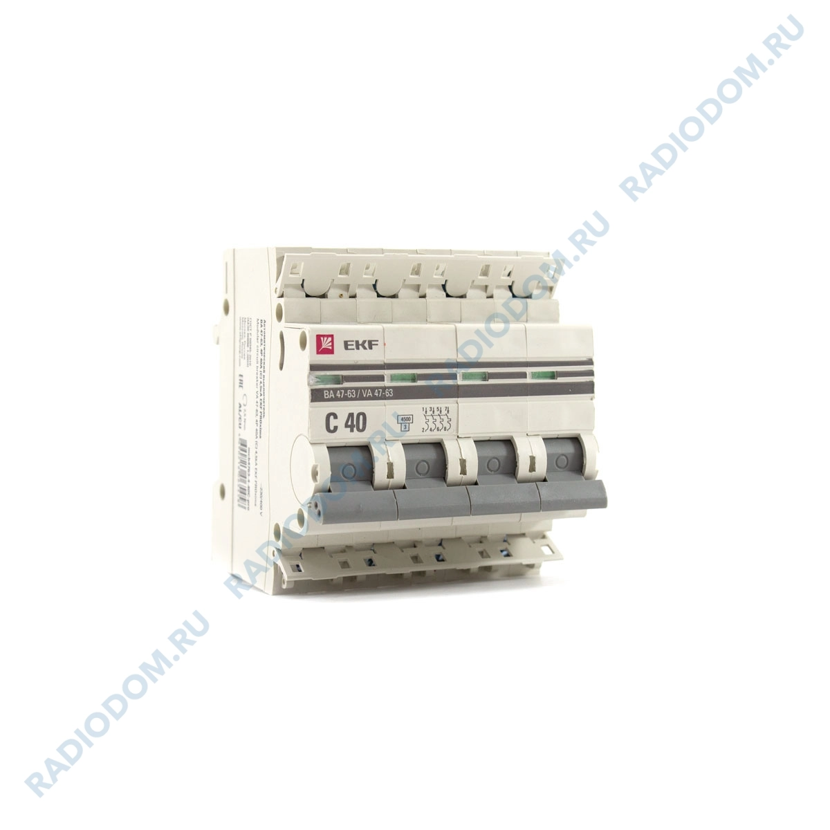 Автоматический выключатель ВА 47-63 механическое коммутационное устройство, предназначенное для включения (отключения) электрической цепи, а также защиты от короткого замыкания и перенапряжения. В выключателях имеются пластиковые крышки, закрывающие доступ к винтовому зажиму и служащие для опломбирования выключателей, что исключает несанкционированный доступ к проводникам. Корпус выключателей усилен дополнительными заклепками для устранения эффекта расхождения корпуса. Рабочий ток 40 А. Номинальная отключающая способность 4,5 кА. Ширина равна 4 модулям. Глубина установки 50 мм. Возможна коммутация медным и алюминиевым проводником. Максимальное сечение подключаемого кабеля 25 мм2. Общее количество полюсов – 4. Гарантия от производителя 7 лет.