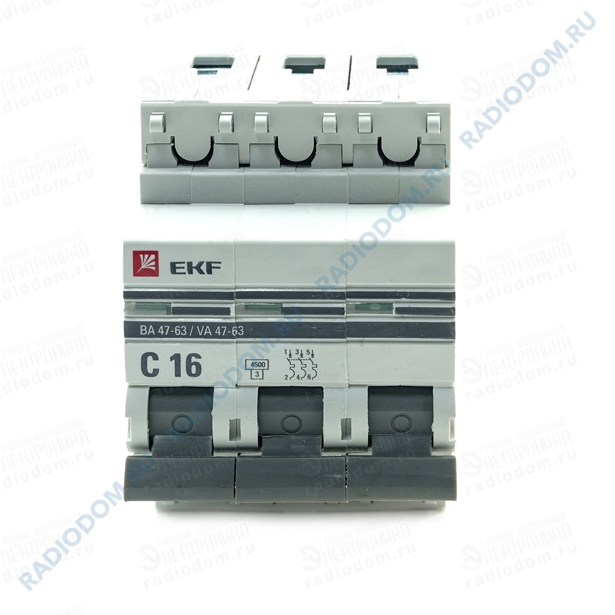 Автоматический выключатель 3P 16A (C) ВА47-63 4,5кА EKF