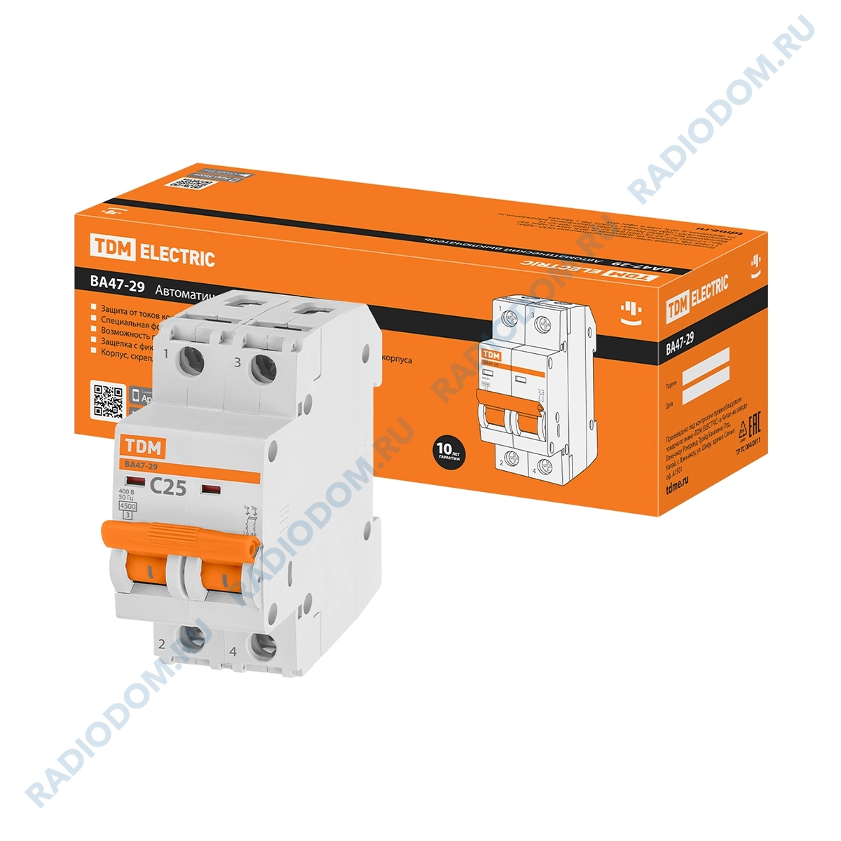 Автоматический выключатель 2P 25A (C) ВА47-29 4,5кА TDM ELECTRIC