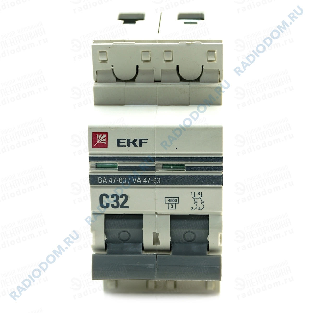 Автоматический выключатель 2P 32A (C) ВА47-63 4,5кА EKF
