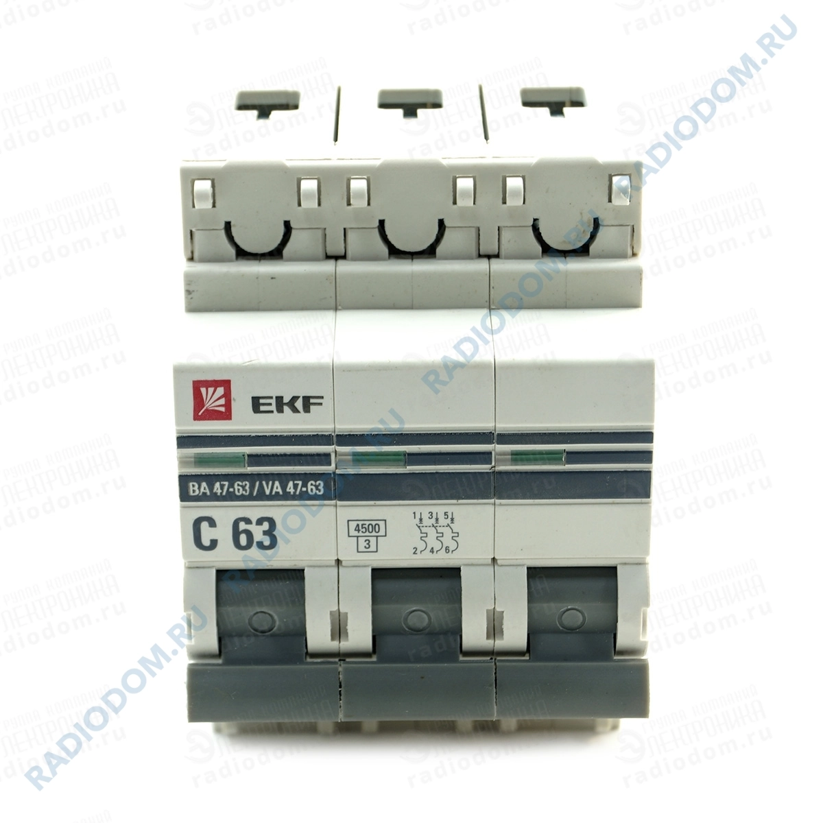 Автоматический выключатель 3P 63A (C) ВА47-63 4,5кА EKF