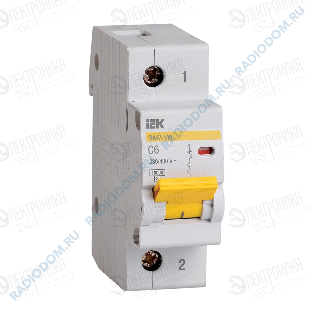 Автоматический выключатель 1P 6A (C) ВА47-100 10кА MVA40-1-006-C iEK