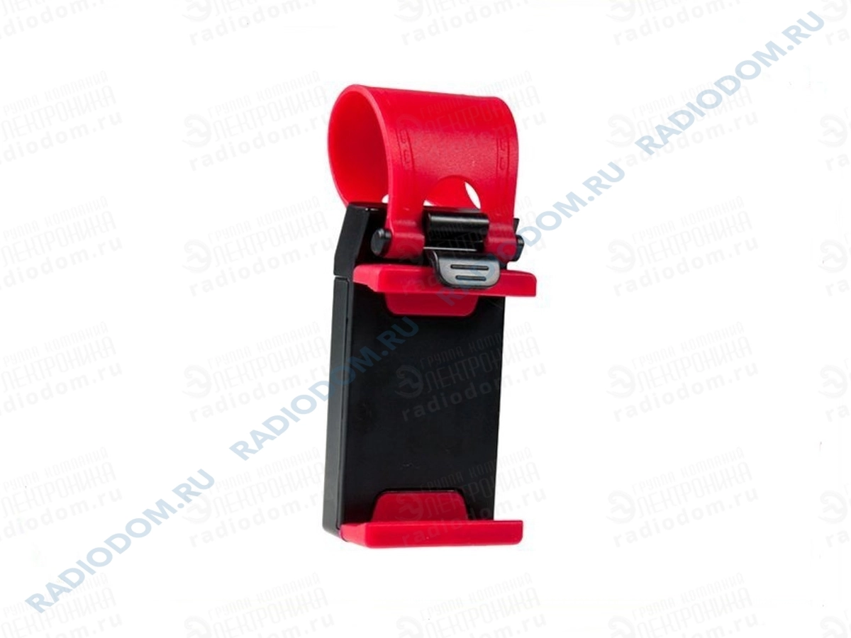 Держатель на рулевое колесо — универсальный аксессуар, который подойдет не только для автомобиля, но и для велосипеда. Держатель изготовлен из пластика и силикона. Пластиковая часть черного цвета раздвигается, благодаря пружинному механизму телефон плотно зажимается в креплении. Силиконовая лента обхватывает место установки за счет чего аксессуар не скользит на руле.