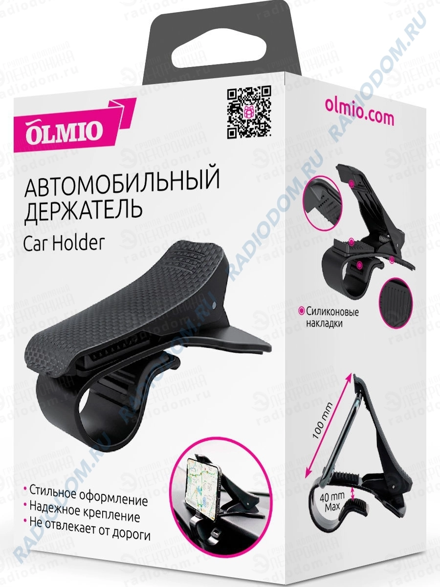 Автомобильный держатель Olmio предназначен для закрепления смартфона на приборной панели, в зоне видимости водителя.