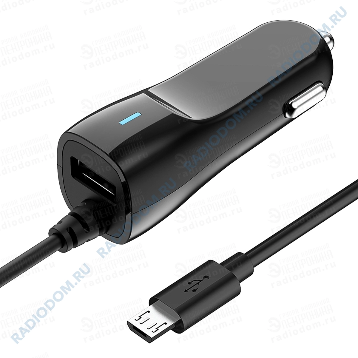 Автомобильное зарядное устройство microUSB 2в1, Olmio имеет USB-разъем и встроенный кабель с microUSB-коннектором. Если подключить оба выхода одновременно, быстрее всего зарядятся смартфоны, так как АЗУ распределяет силу выходного тока по 1А на каждый. Для нетребовательных гаджетов, вроде плееров, навигаторов и телефонов этого достаточно. А планшет будет заряжаться медленно.