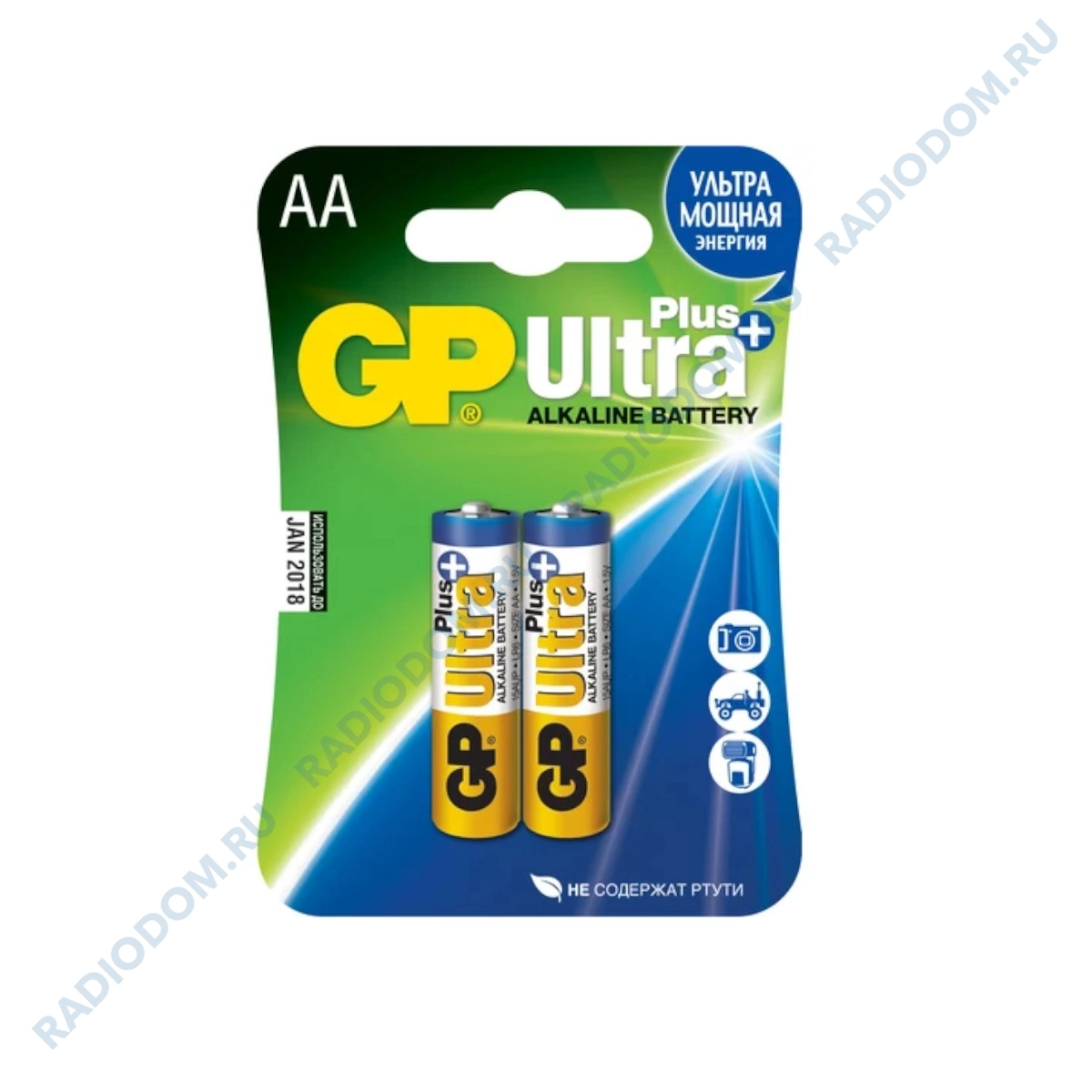 Батарейка LR6 AA Alkaline Ultra Plus 1,5В (2 штуки) GP