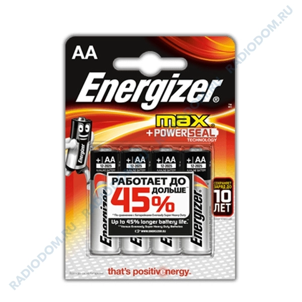 Серия элементов питания MAX - это проверенная временем линейка элементов питания, отлично зарекомендовавших себя для повседневных нужд. Срок службы до 10 раз дольше, чем у обычных солевых батареек Гарантированно не протекают Заряд сохраняется на протяжении десяти лет до момента использования Работают при температурах от -18°С до +55°С Батарейки Energizer Max идеально подойдут для повседневных приборов со средним энергопотреблением – пульты, фонари, детские игрушки