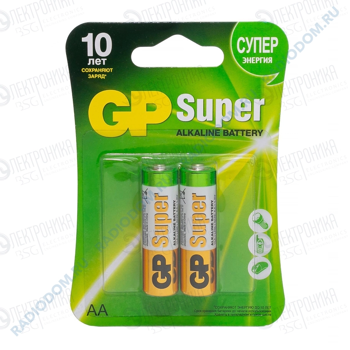 Батарейка LR6 AA Alkaline Super 1,5В (2 штуки) GP