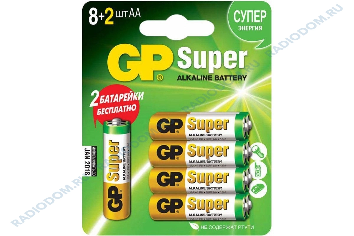 Батарейка LR6 AA Alkaline Super 1,5В (8+2 штук) GP