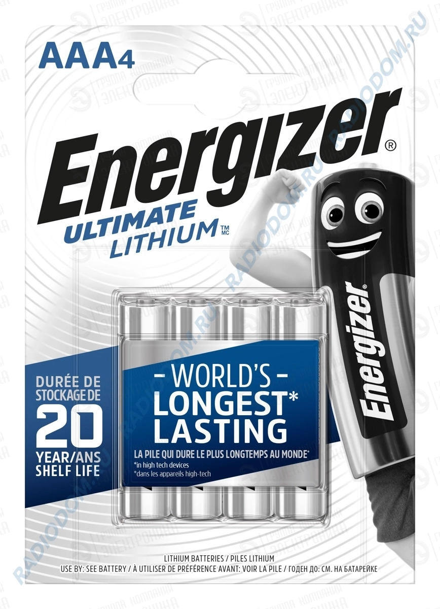 Серия элементов питания Ultimate Lithium - это самые долговечные батарейки в мире! • Заряд сохраняется на протяжении двадцати лет до момента использования! • Срок службы до 11 раз дольше, чем у обычных щелочных батареек • Отлично подходят для работы в экстремальных условиях - от -40°С до +60°С Линейка элементов питания Energizer Ultimate Lithium идеально подходят для приборов с высоким энергопотреблением - от портативных метеостанций и Bluetooth колонок до медицинских устройств.
