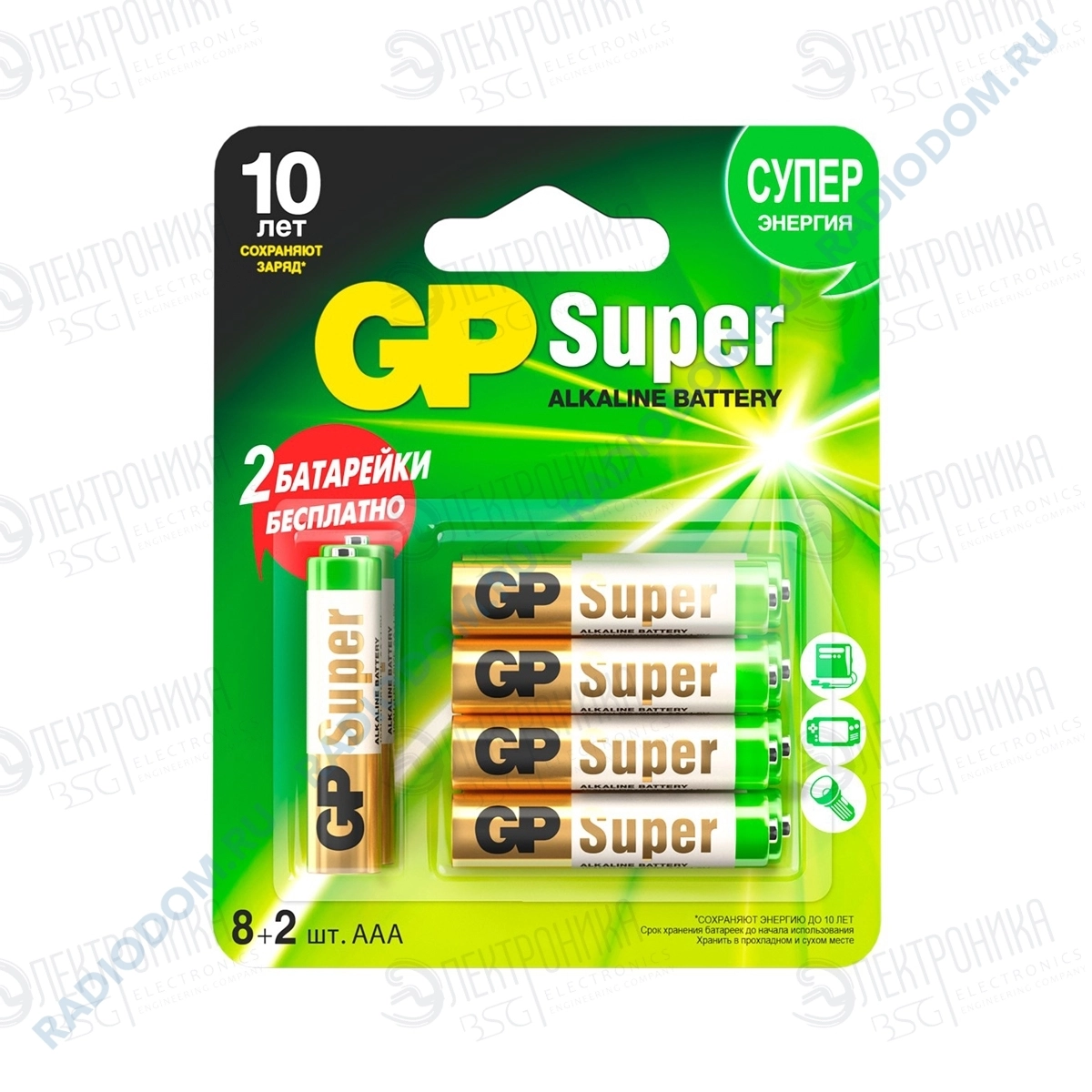 Батарейка R03 AAA Alkaline Super 1,5В (8+2 штук) GP