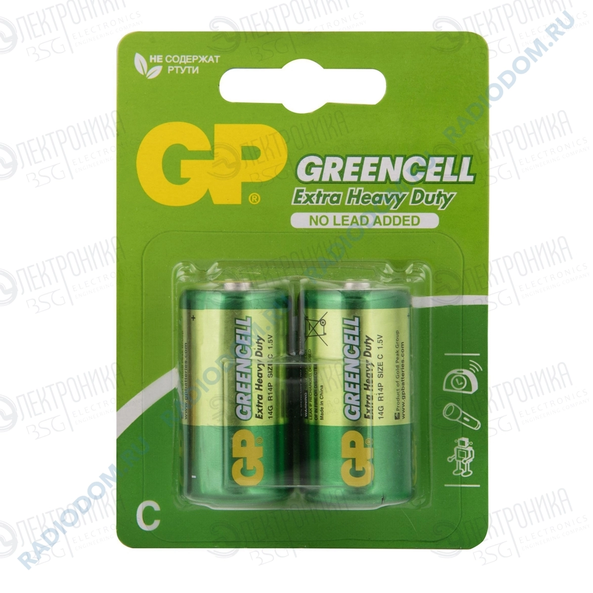 Батарейка R14 C Greencell 1,5В (2 штуки) GP