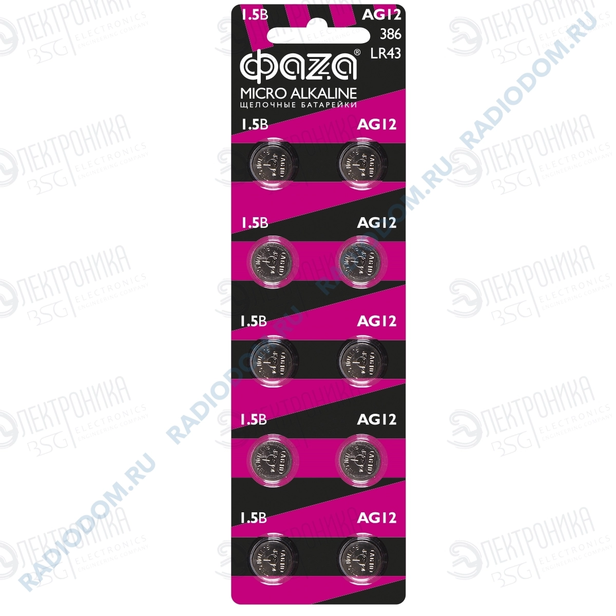 Батарейка G12 LR43 AG12 186 386 LR1142 GP86A SR43W (1 штука) Фаza