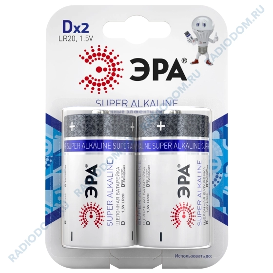 Батарейка LR20 D Alkaline SUPER 1,5В (2 штуки) ЭРА