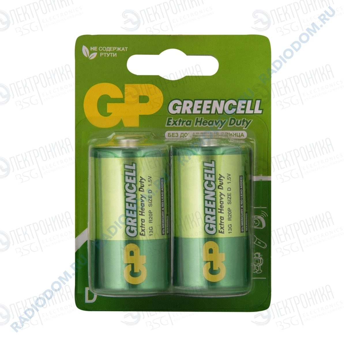 Батарейка R20 D Greencell 1.5В (2 штуки) GP