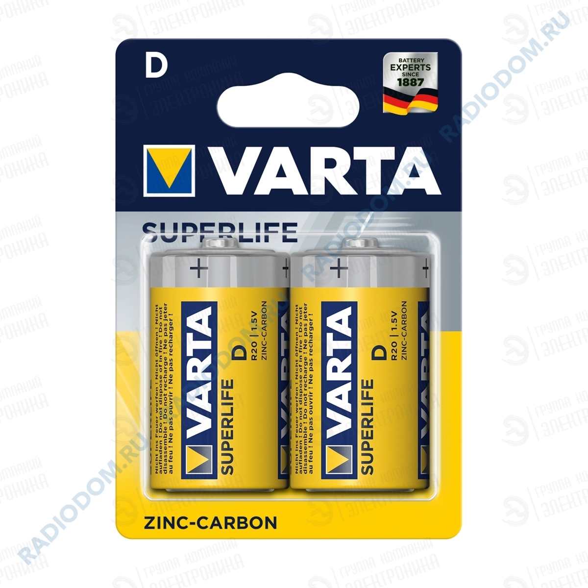 Батарейка R20 D 373 Superlife 1,5В (2 штуки) VARTA