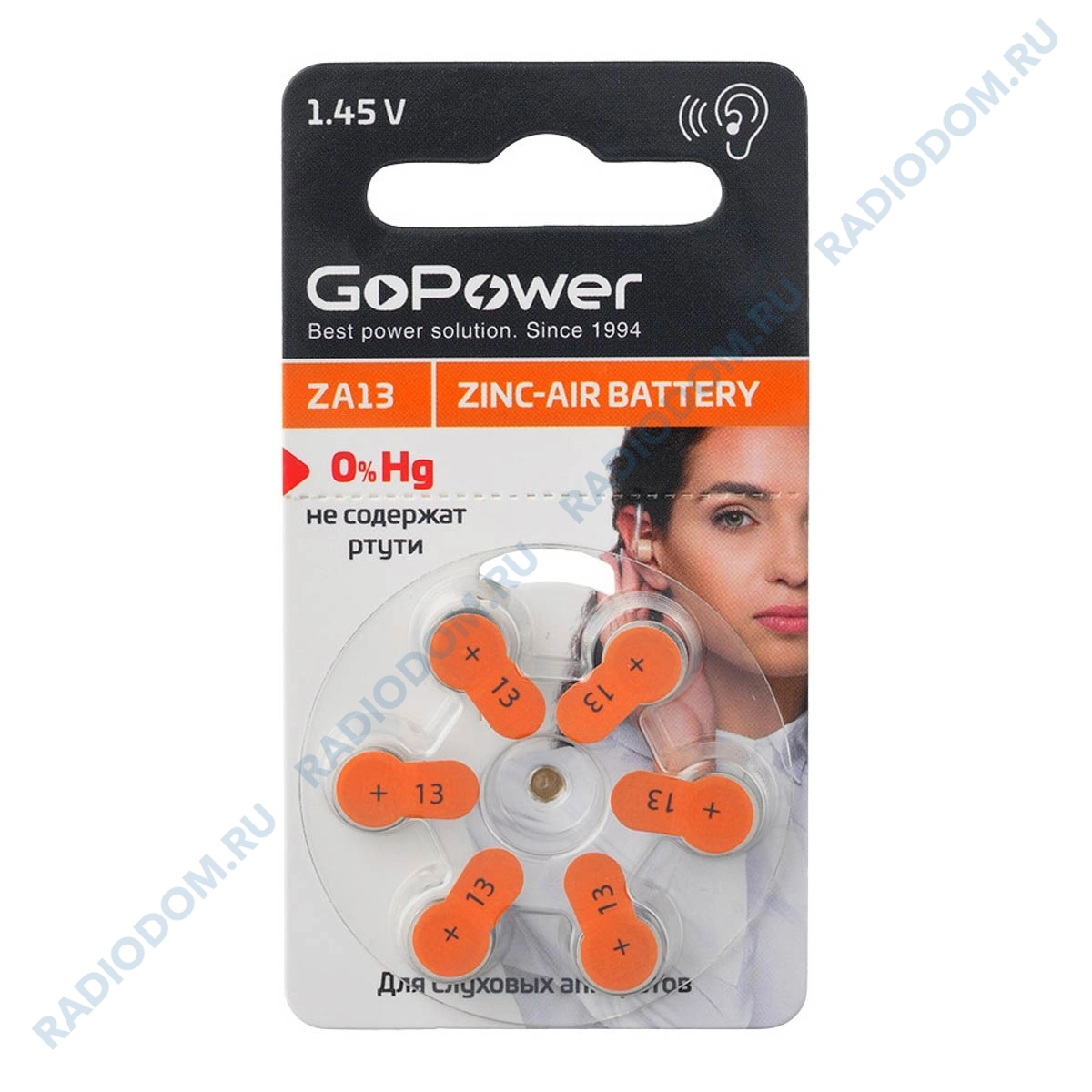 Батарейка ZA13 (PR48) 1,4В (6 штук) GoPower