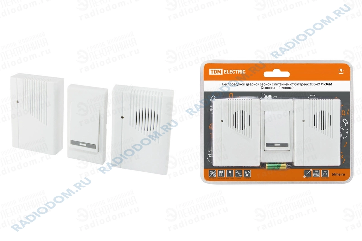 Звонок беспроводной 36 мелодий на батарейках ЗББ-21/1-36М TDM ELECTRIC