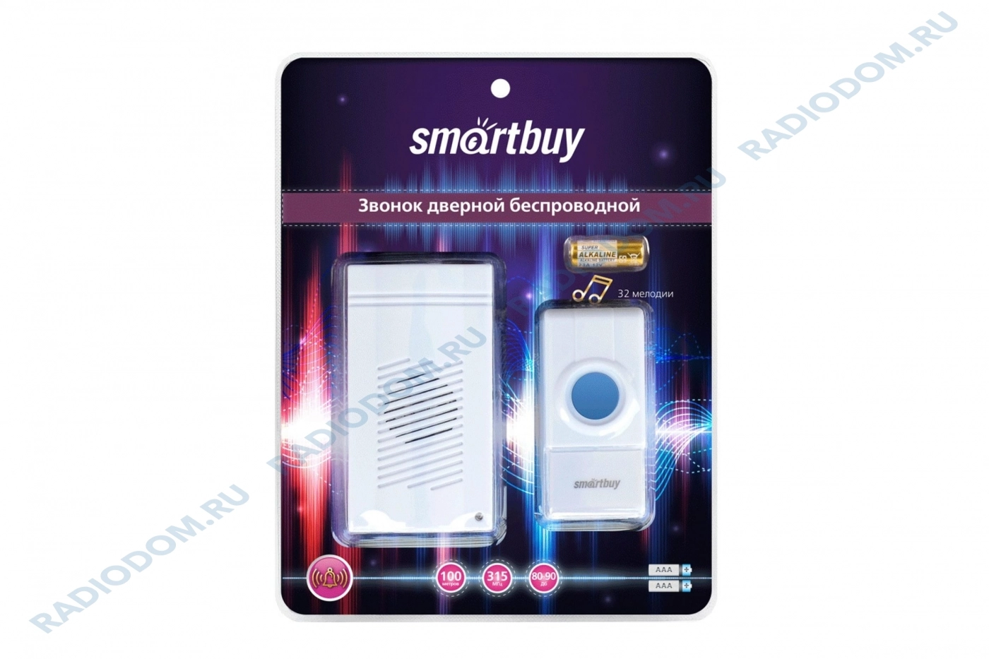 Звонок беспроводной 32 мелодий на батарейках Smartbuy
