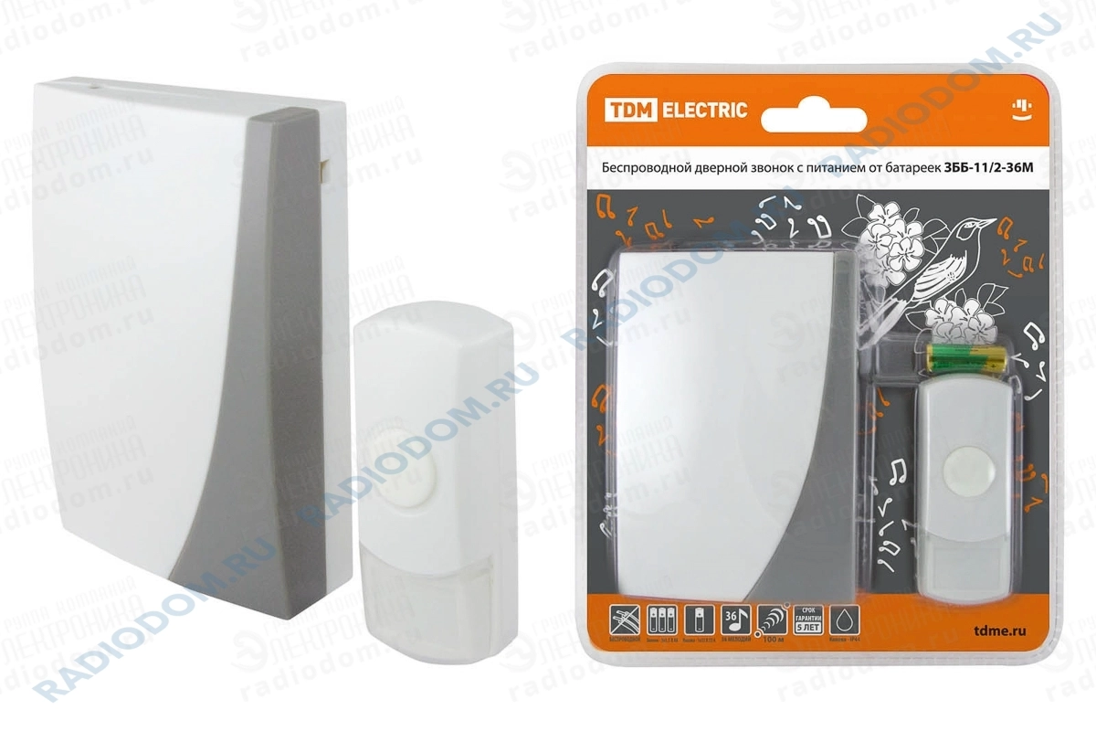 Звонок беспроводной 36 мелодий на батарейках ЗББ-11/2-36М TDM ELECTRIC