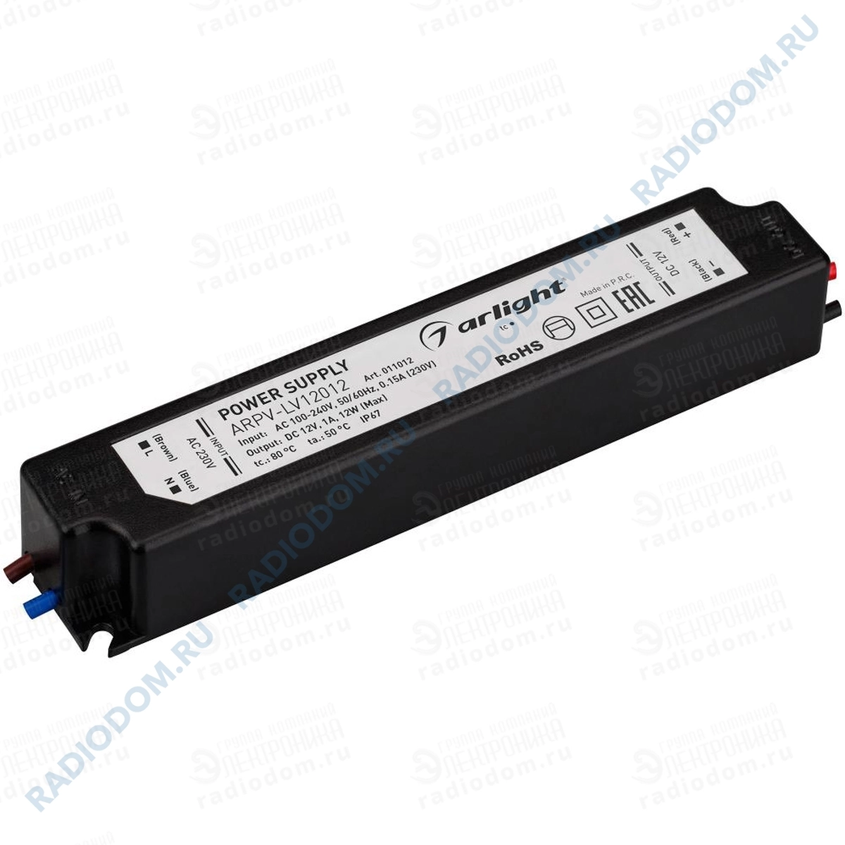 Источник питания герметичный 12В 1,0А 12Вт IP67 ARPV-LV12012 пластиковый корпус Arlight