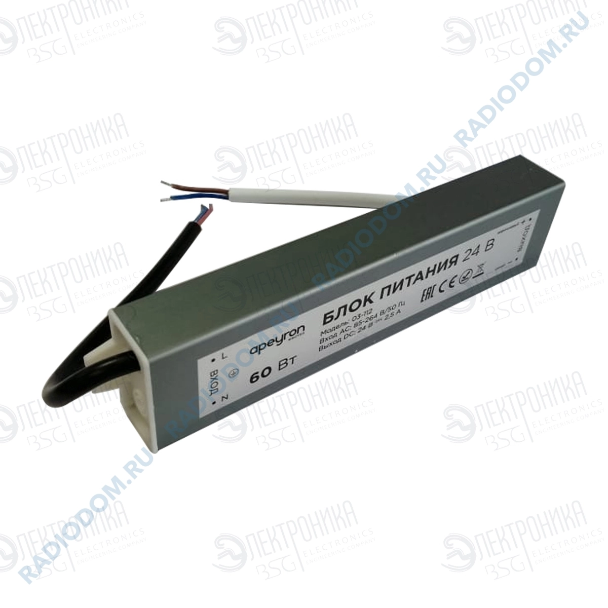 Блок питания 24В 03-112 из линейки Стандарт с номинальной мощностью 60Вт обладает на выходе постоянным током с напряжением 24В, что делает его идеальным источником питания для таких изделий, как светодиодная лента, светодиодные лампы, линейки и модули с рабочим напряжением 24В. Компактный, алюминиевый корпус с размерами 170х40х22мм позволит найти место для монтажа в любом интерьере, спрятать в местах с ограниченным пространством. Также он будет легок в подключении благодаря проводам с цветовой маркировкой и обозначениям на корпусе. Кроме всего прочего этот блок питания, благодаря входному фильтру, будет работать при скачках напряжения в диапазоне 85-264В, в то время как выходной фильтр сглаживает пульсацию и защищает ваши глаза. Данный блок питания имеет самую высокую степень защиты от пыли и влаги IP67. Такие блоки питания могут выдержать даже кратковременное погружение под воду, и именно их рекомендуется использовать в тех местах, где есть высокий уровень воздействия влаги и вероятность попадания воды.