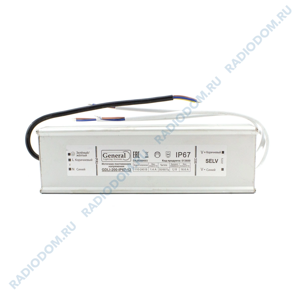 Блок питания 12,0В влагозащищенный встраиваемый GDLI (16,6А, 200 Вт) General