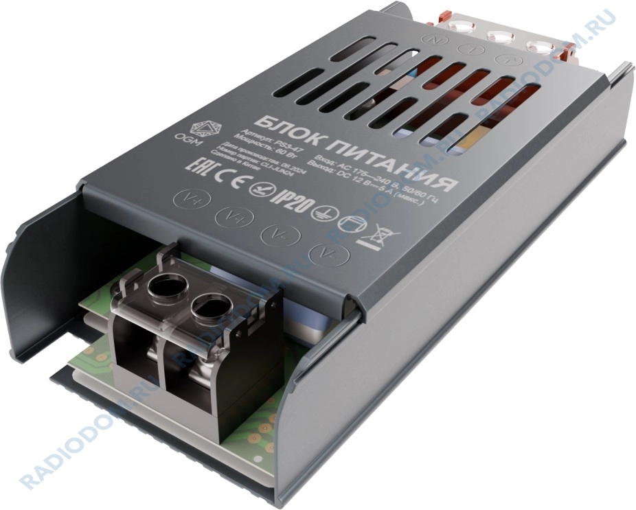 Блок питания 12В PS3-47 из линейки Стандарт с номинальной мощностью 60Вт обладает на выходе постоянным током с напряжением 12В, что делает его идеальным источником питания для таких изделий, как светодиодная лента, светодиодные лампы, линейки и модули с рабочим напряжением 12В.
