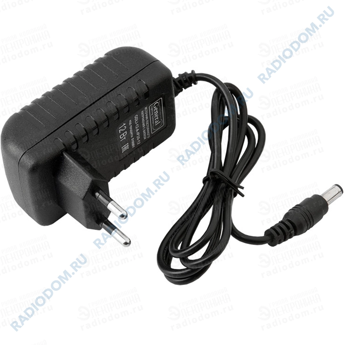Блок питания 12,0В сетевой GDLI-12-A-IP20-12 IP20 (1А, 12 Вт) штекер 5,5/2,1 General