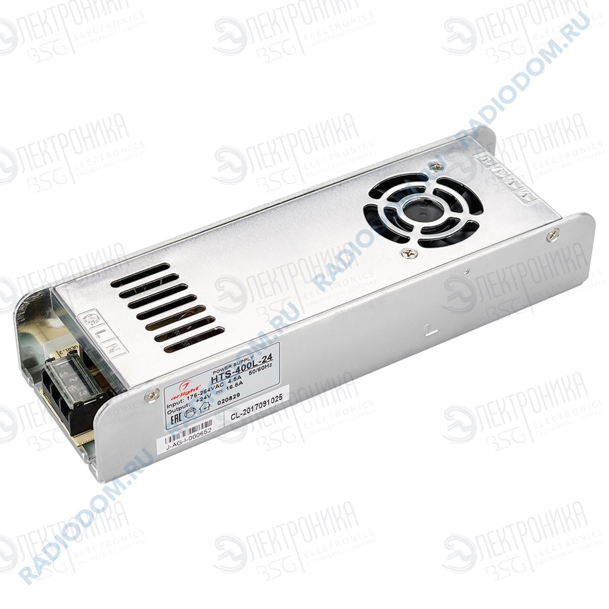 Источник питания стабилизированный 24В 16,5А 400Вт HTS-400L-24 импульсный встраиваемый, с вентилятором 020829 Arlight