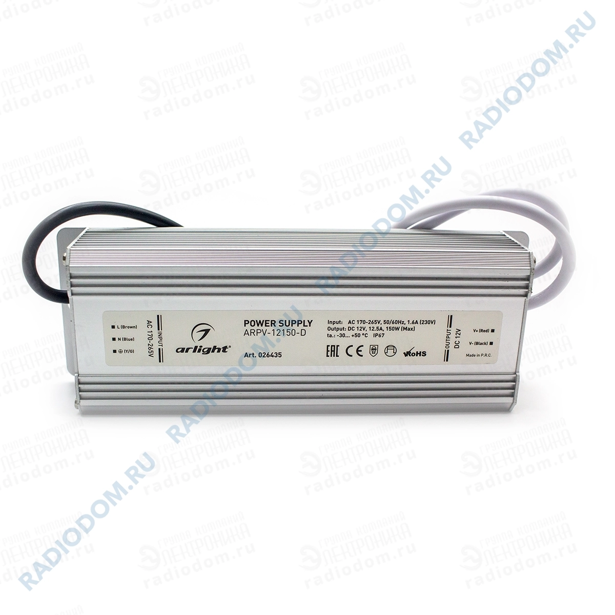 Источник питания герметичный 12В 12,5А IP67 150Вт ARPV-12150-D алюминиевый корпус Arlight