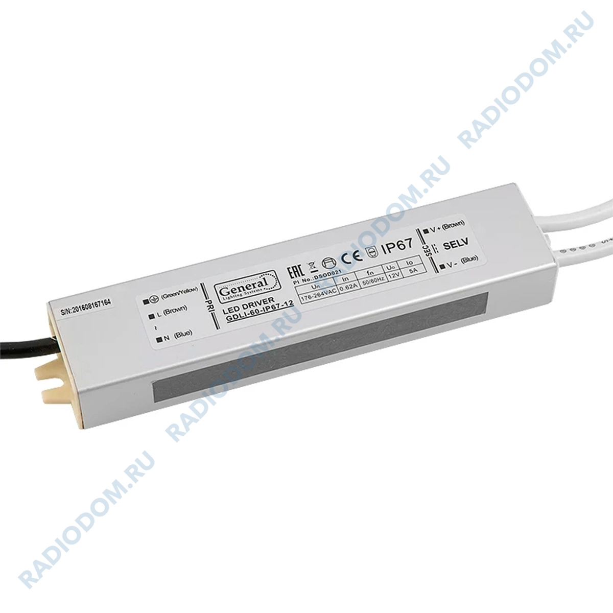 Блок питания 12,0В влагозащищенный встраиваемый GDLI (5,0А, 60 Вт) General