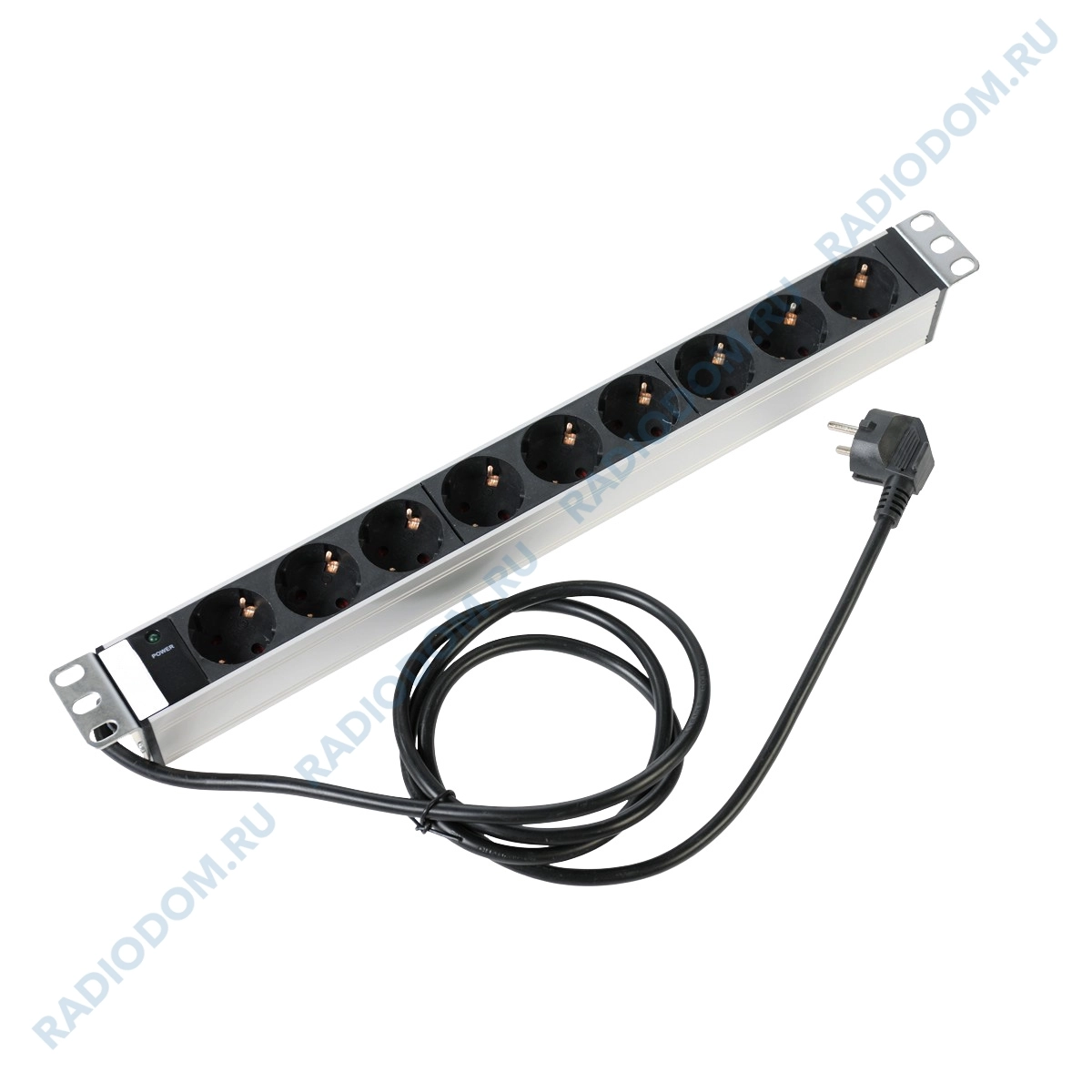 Блок розеток Rem-16 с выключателем, 9 розеток Shuko, 19", R-16-9S-I-440-1.8 ЦМО