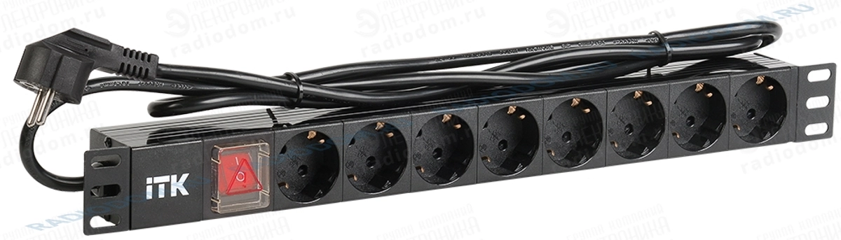 Блок розеток PDU для 19" шкафов, горизонтальный PH12-8D1-P iTK