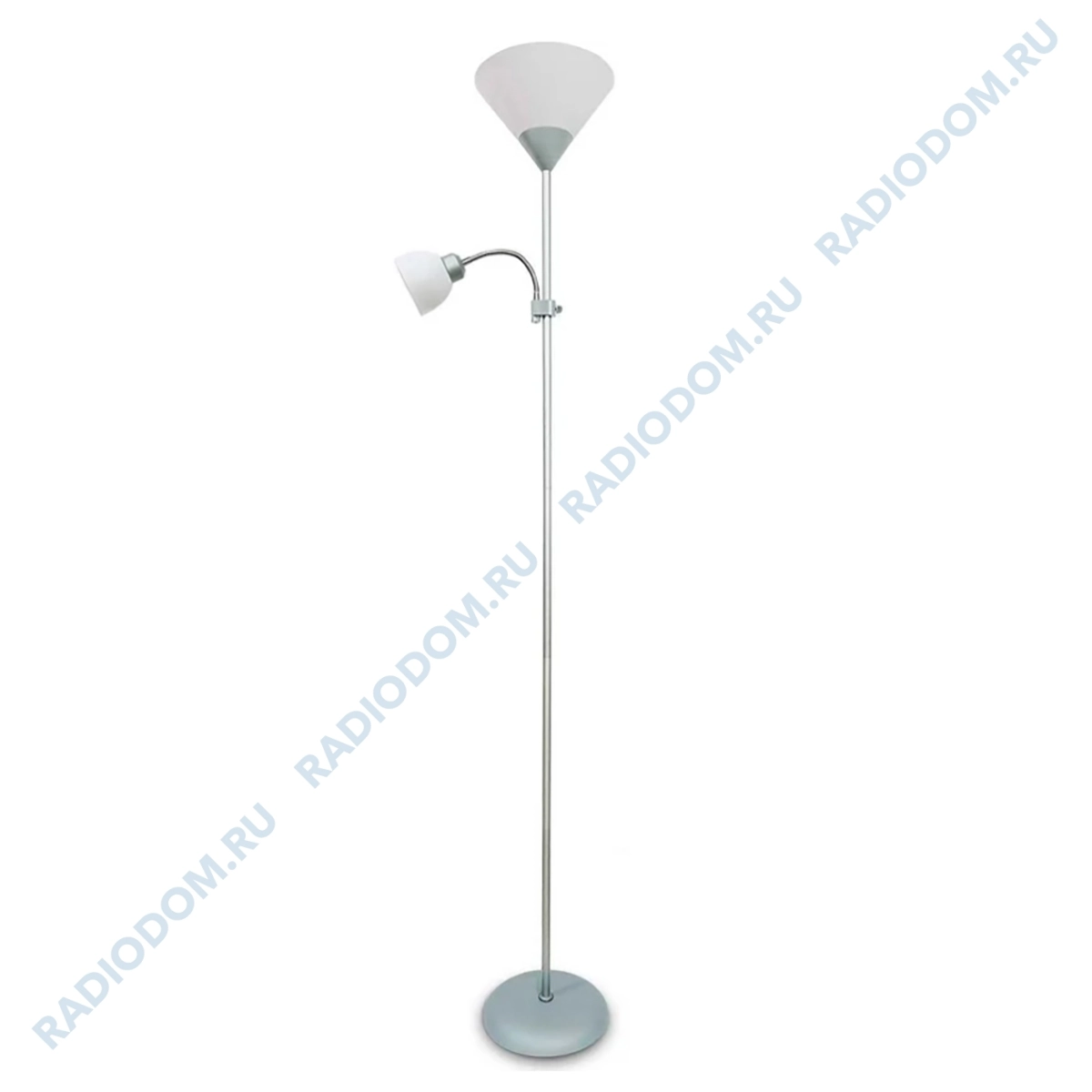 Светильник напольный под лампу ТНО 02-Е27+Е14С 230В белый плафон, серебряный корпус IN HOME