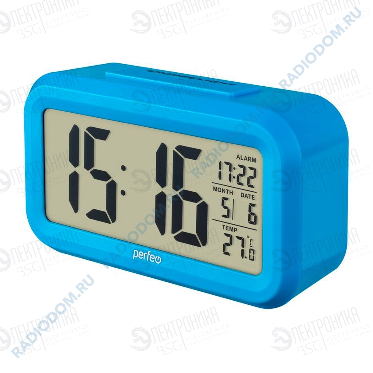 Часы-будильник "Snuz" синий Perfeo PF-S2166