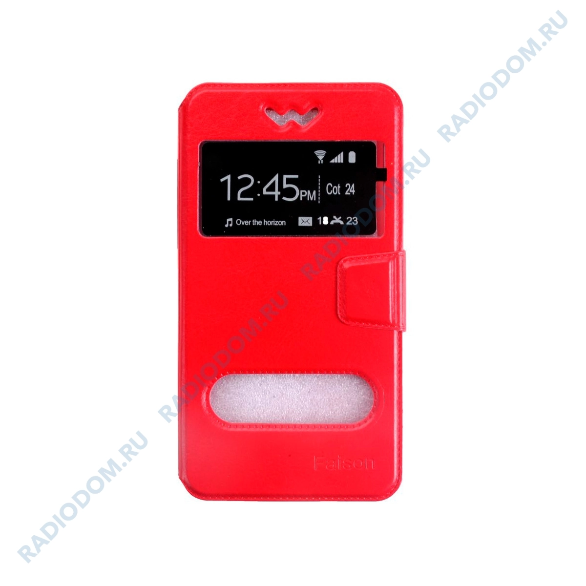 оснащен двумя окошками в передней панели, чтобы отвечать на звонок и видеть время, не открывая бук-кейс;