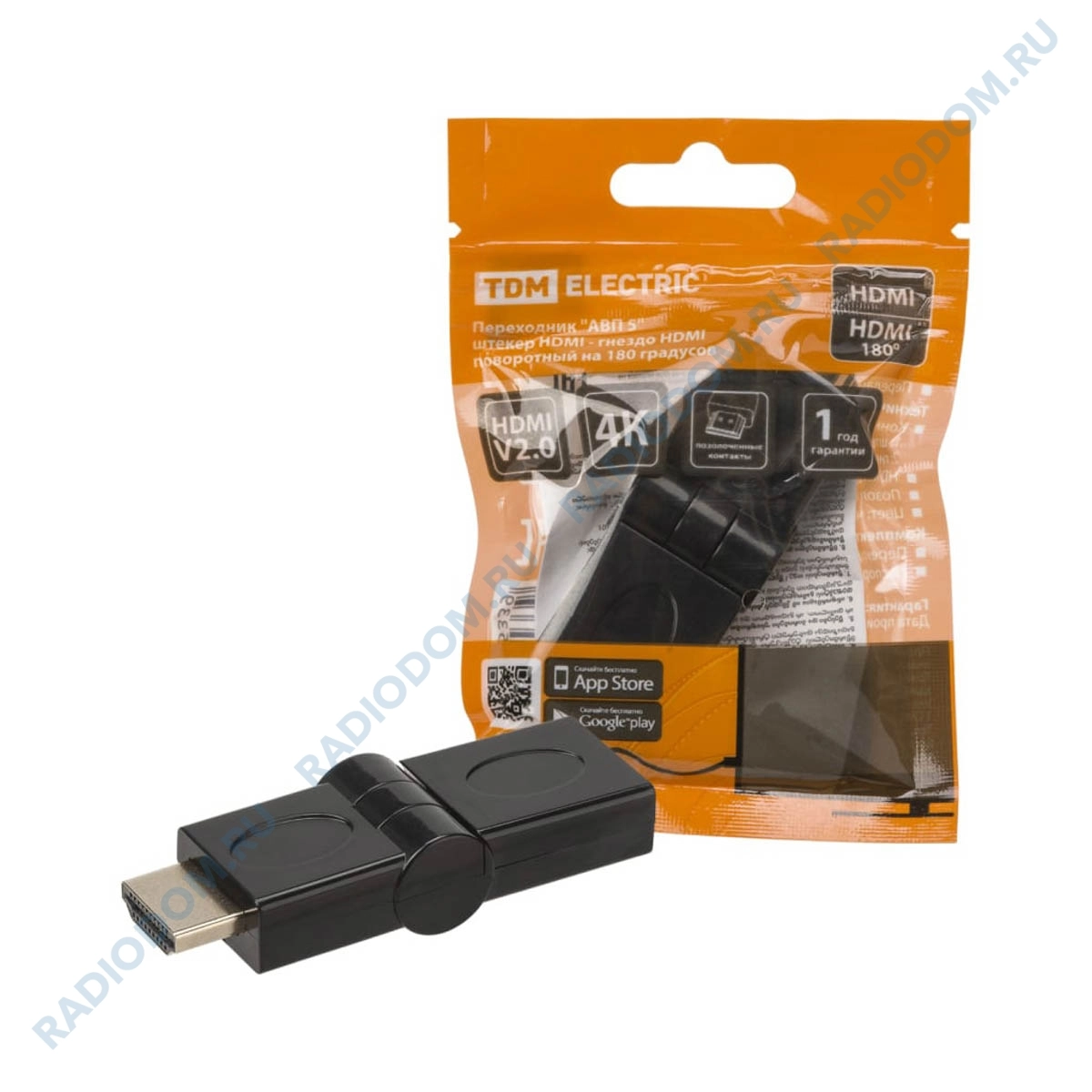 Переходник HDMI штекер - HDMI гнездо Gold пластик SQ4040-0105 поворотный 180° TDM ELECTRIC