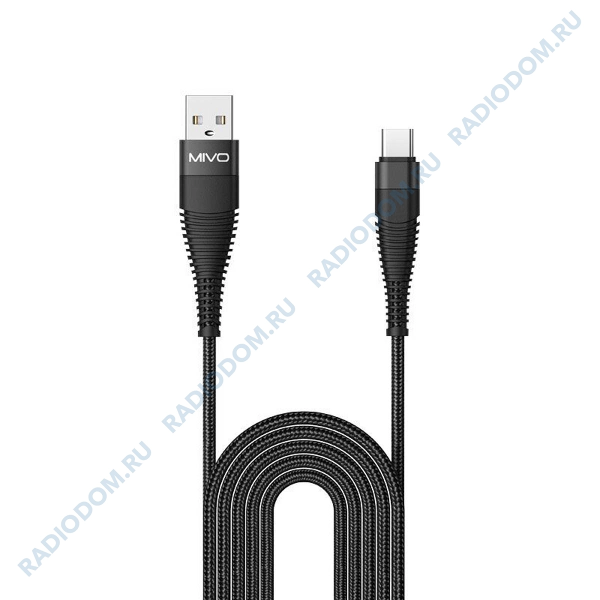Шнур USB A - Type-C 2 м черный MX-60T Mivo