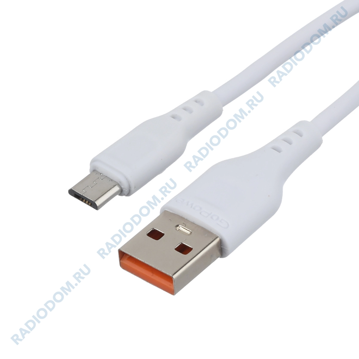 Кабель USB А - micro USB белый 2,0 м GP01M-2M GoPower