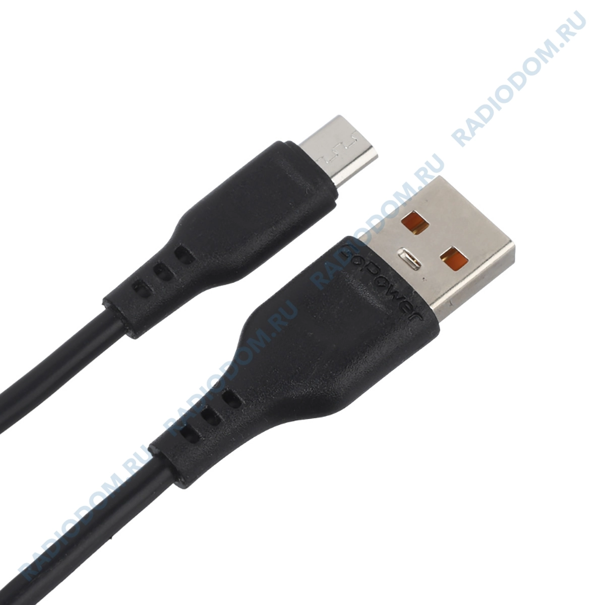 Кабель USB А - micro USB черный ПВХ 1м GP01M GoPower