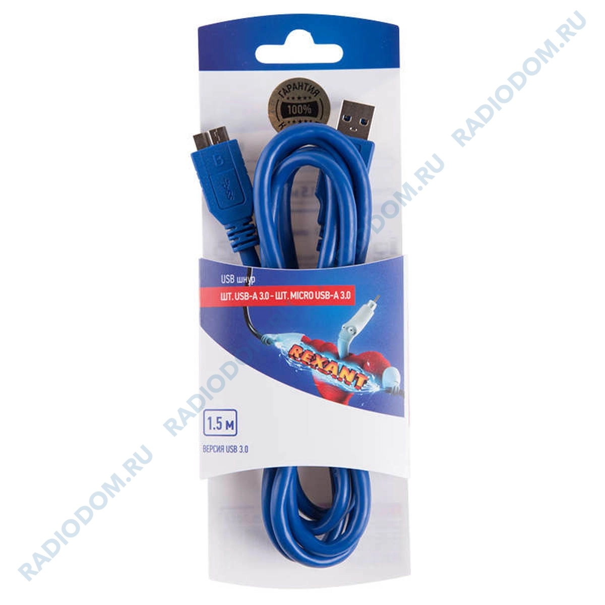 Кабель USB А - micro USB 3.0 синий 1,5 м Rexant