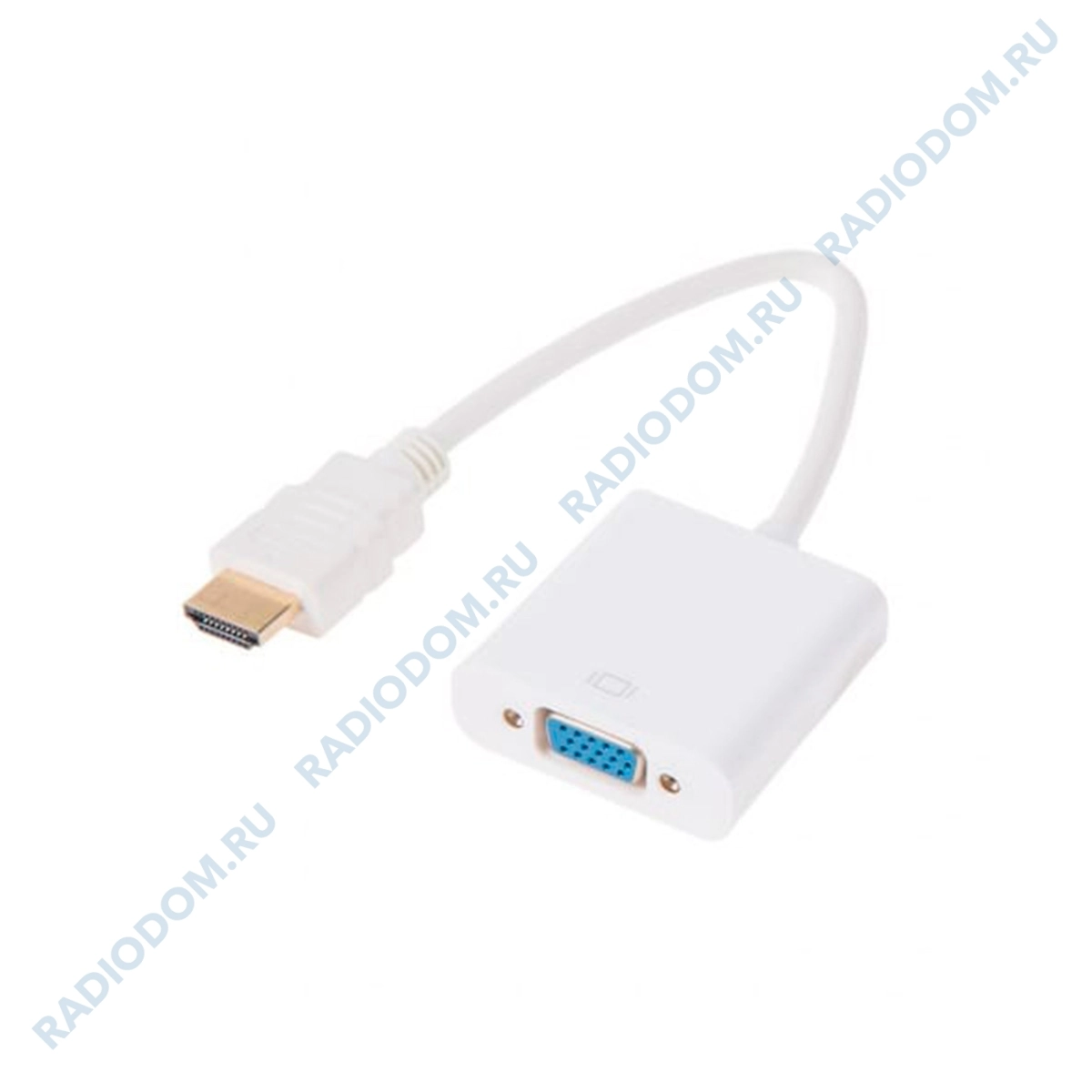 Переходник HDMI штекер - VGA гнездо Gold пластик 17-6835 шнурок белый Rexant