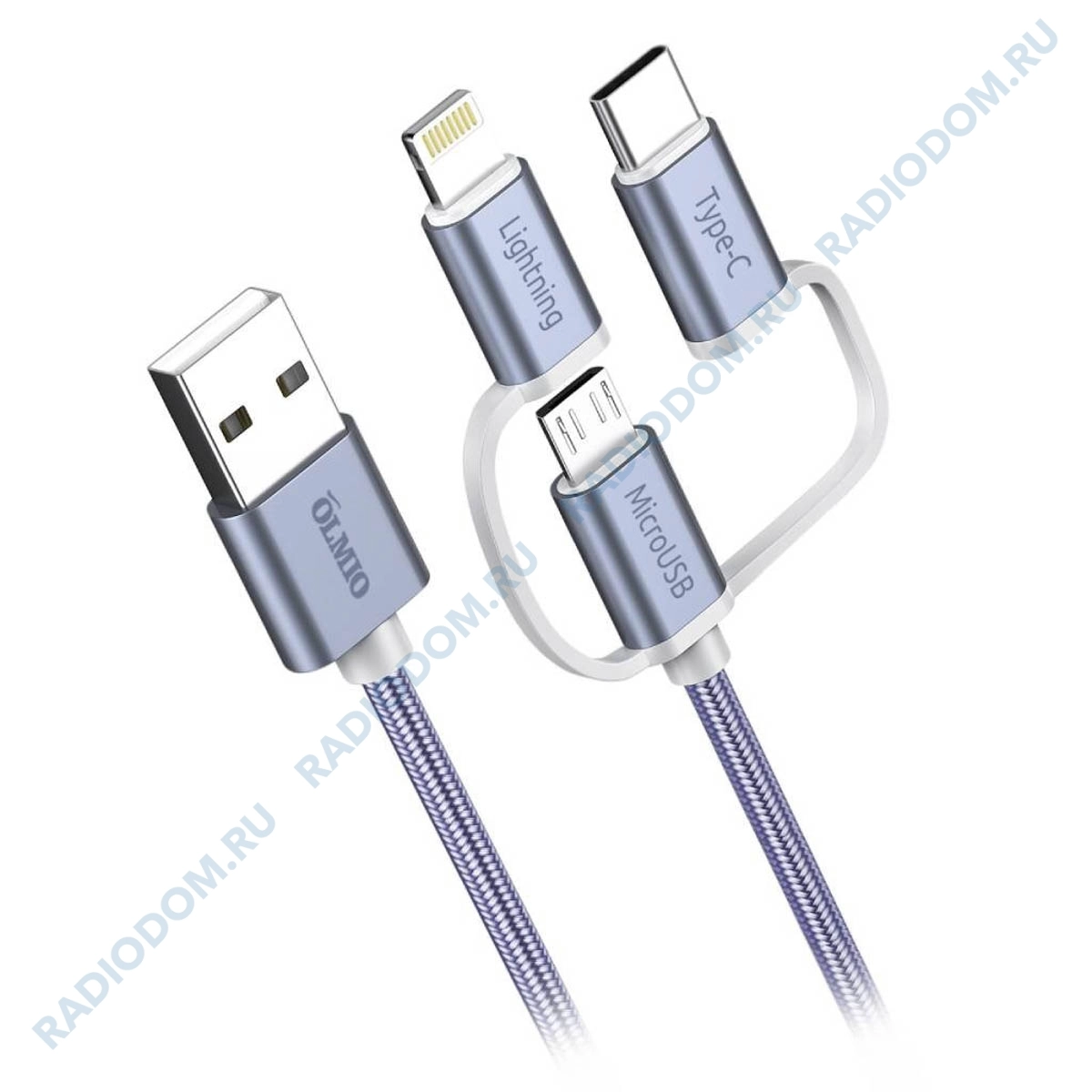Универсальный кабель три-в-одном подойдет для устройств с разъемами microUSB, Lightning и Type-C.