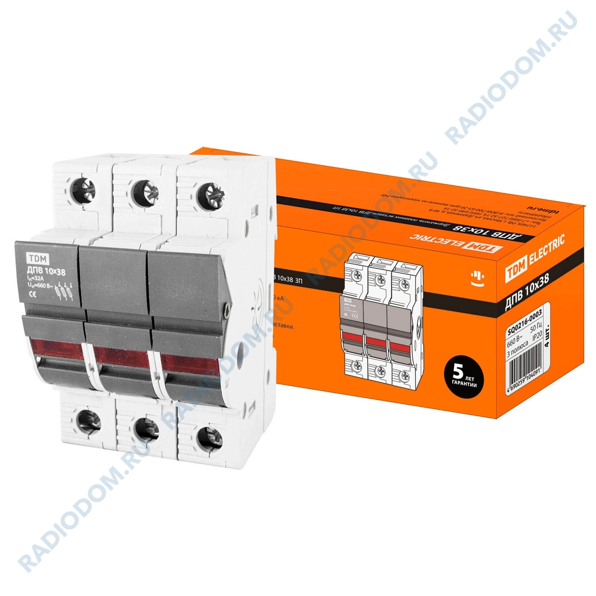 Держатель плавких вставок ДПВ 10х38 3П TDM ELECTRIC SQ0216-0003