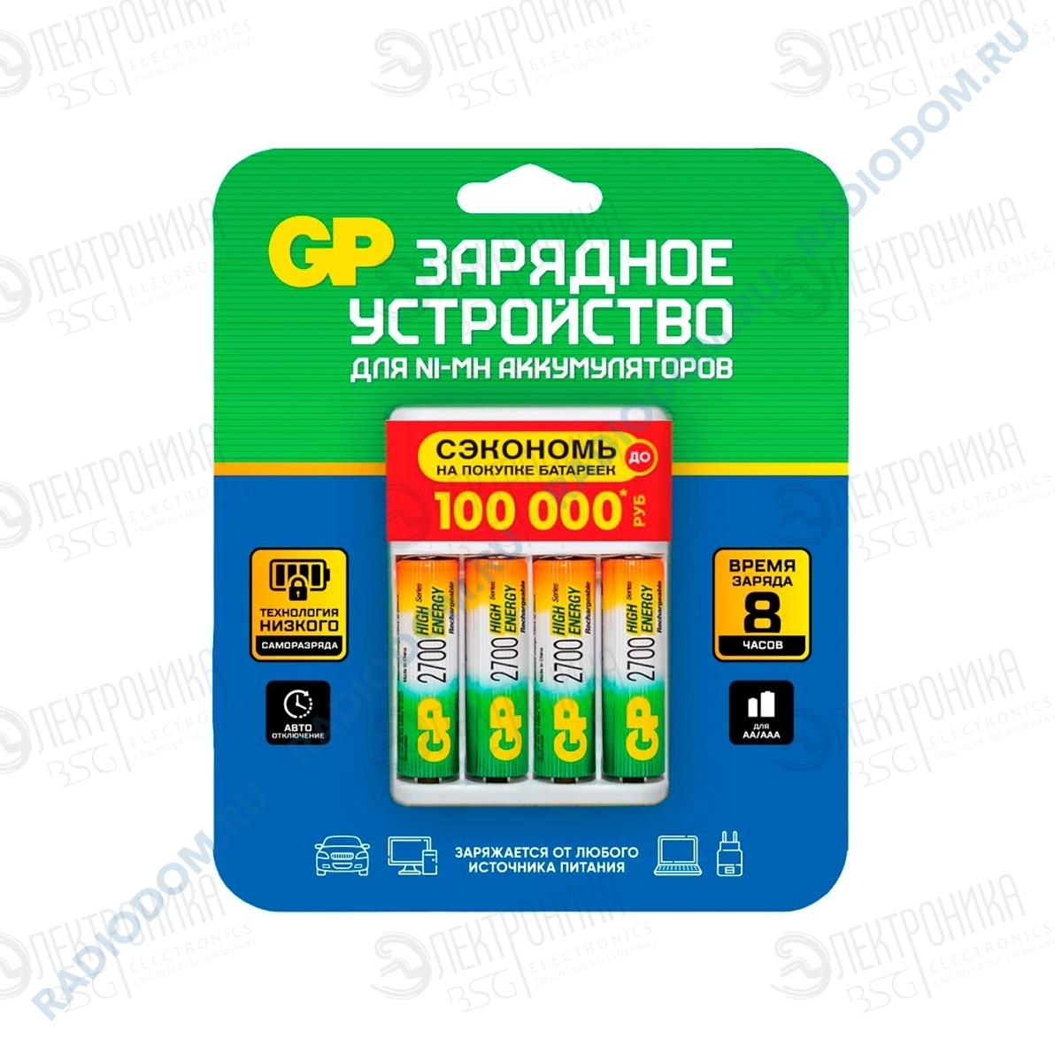 Зар. ус-во аккум AA/AAA 2-4шт micro-USB + 4акк AA 2700mAh 270AAHC/CPBR-2CR4 ПРОМО GP