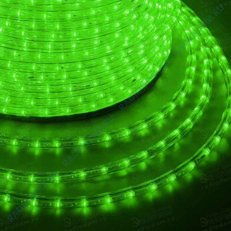 Дюралайт светодиодный 2-жильный Ø13мм Фиксинг 1 цвет зеленый-мерающий 121-254 2W-100-240V Неон-Найт