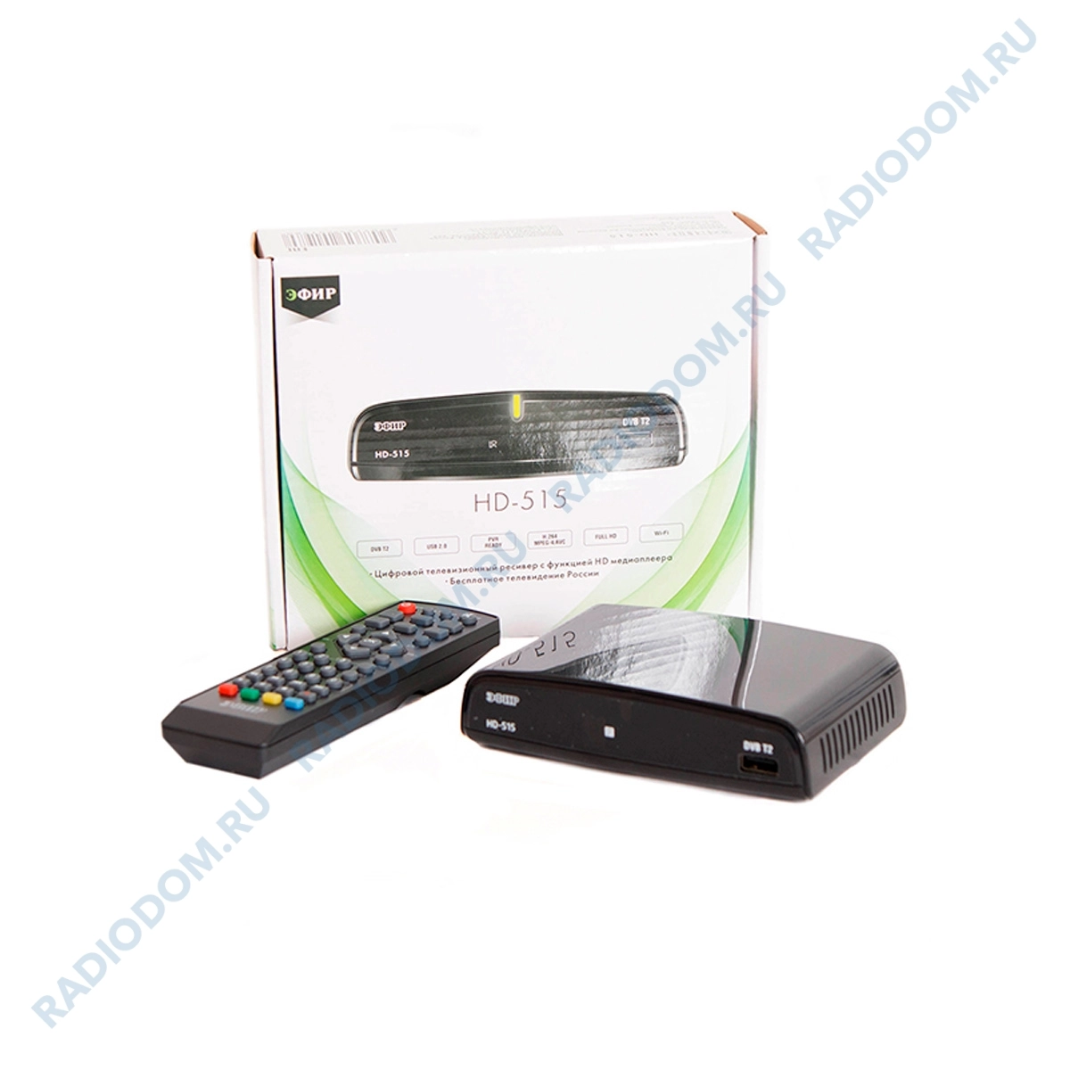 Эфир HD-515 оснащен чипсетом Mstar7T01, поддерживает МВ (174-230)MHz, ДМВ (470-862)MHz диапазоны .Имеет множество полезных функций. Поддерживает все на сегодняшний день форматы: MPG, MKV, MPEG, DAT, VOB, MP4, MOV, AVI, ASF, FLV, 3GP, TS, MP3, WAV, WMAP.