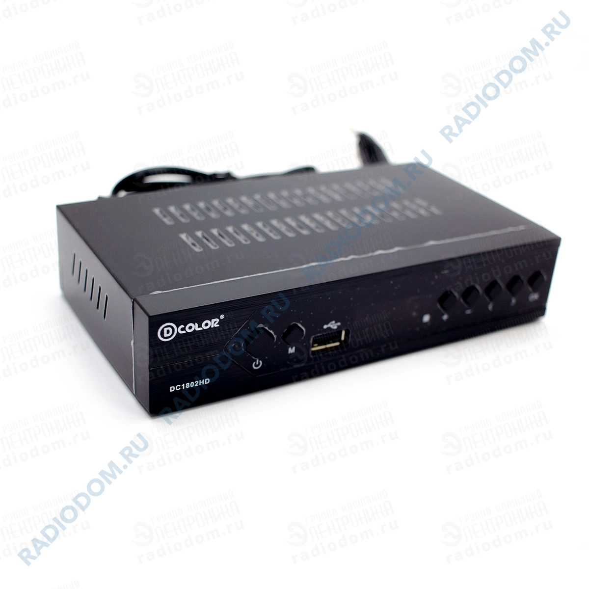 Цифровой телевизионный приемник D-COLOR DC1802HD позволяет принимать цифровые каналы как эфирного телевидения в стандарте DVB-T2, так и кабельного телевидения стандарта DVB-C. Подключение телевизоров возможно через разъемы HDMI и RCA. Кнопки управления на лицевой панели позволят не бояться потери пульта. Приемник можно использовать как медиаплеер для USB-накопителей и смотреть фильмы и фото, слушать музыку. Приемник поставляется с внешней антенной Wi-Fi, дающей возможность подключиться к интернету и смотреть YouTube и IPTV через встроенные приложения. У приемника встроенный блок питания и металлический корпус, есть дисплей, а комплектация помимо прочего включает кабель RCA, пульт ДУ и элементы питания к нему.