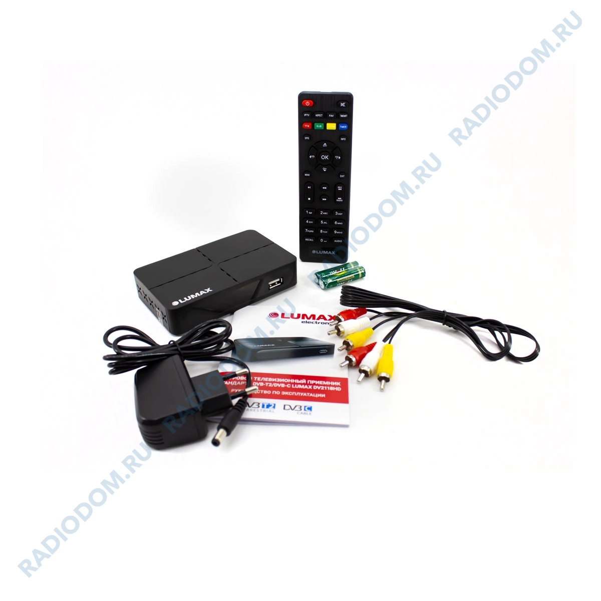 Цифровой телевизионный приемник Lumax DV-3205HD позволяет принимать цифровые каналы как эфирного телевидения в стандарте DVB-T2, так и кабельного телевидения стандарта DVB-C. Подключение телевизоров возможно через разъемы HDMI и RCA. Кнопки управления на лицевой панели позволят не бояться потери пульта. При приобретении дополнительной внешней антенны Wi-Fi открывается возможность смотреть YouTube и IPTV через встроенные приложения. Приемник можно использовать как медиаплеер для USB-накопителей и смотреть фильмы и фото, слушать музыку. У приемника встроенный блок питания и металлический корпус, есть дисплей, а комплектация помимо прочего включает кабель RCA, пульт ДУ и элементы питания к нему.